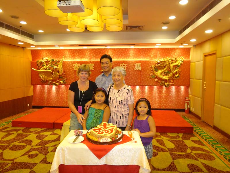 A leisurely late wakeup for Emily meant the day was off to a good start. Saturday morning should never start too early! We had the usual breakfast and then headed down to Causeway Bay because Stephanie had to find/buy a hairband or two. Along the way to the hairband type shops, we also stopped in and had Emily’s eyes checked out. Every now and again she complains that her vision is a bit blurry and we can’t decide if it’s because she’s tired or what. She’s had her eyes checked at home too, but we figured since they do it free here, we’d check again. Everything looks fine, though according to the doctor. Danny had been wanting to get himself a nice pair of sunglasses, and since I’m not one for being left out of the action, I looked too. He found a pair he really liked and got them, and I picked out a very trendy pair of Agnes B glasses for myself. Happy parents make for happier kids! That’s my theory and I’m sticking to it. We found an alley-way with plenty of hair accessory shops and were successful in getting hairbands…..four of them. Two each for the girls. The kids were a bit pissed at me partway down the alley, because I kept saying “nope, too expensive”, to the vendors at their asking prices. Finally, as we neared the end of the alley, I got all four of the hairbands, for the asking price of one at the first shop!!! Yeah, I fought that hard over about $5 Cdn. Hee hee. We headed back to the hotel only to find out the real reason Stephy wanted hairbands!!!! She wanted to “create” a headpiece so she and Emily could play “drive thru window” together. Yup, using their iPads as a keyboard/cash register, and their hairbands fashioned with a “mouthpieces” like a microphone a superstar might wear, the pretty little hairbands were put to good use. Only Stephanie eh? The afternoon was spent with all four of us enjoying the sunshine and swimming pool. Unfortunately, Danny had the brilliant idea to host a huge family dinner tonight, so we all headed to a banquet hall. I knew we were in for trouble, these meals always go badly for me and the kids, and I wasn’t wrong. First, everybody wants to touch and talk AT my kids. They hate it. Seriously, people, leave them alone. Nobody likes being shouted at by old people in a foreign language. IT”S NOT FUN. Mostly the kids sat and played matching game with the mahjong tiles that every good banquet hall provides. The food was apparently very nice, just totally not what the kids and I wanted to eat. Lots of fish (which I don’t eat) and dishes with MSG-laden sauces (which my intestines don’t like). So I paid tons of money for a fancy meal that I mostly didn’t eat. The good thing was that Emily and Stephanie were able to sit with Queenie and Cindy (their cousins who speak English) and so they actually thoroughly enjoyed mealtime. There was cake to celebrate Emily’s upcoming birthday, which was super-kind of Pok Hei and his family to arrange! Thanks guys! Just in case you think it was done normally, cake was served and eaten, BEFORE dinner! Gotcha! |